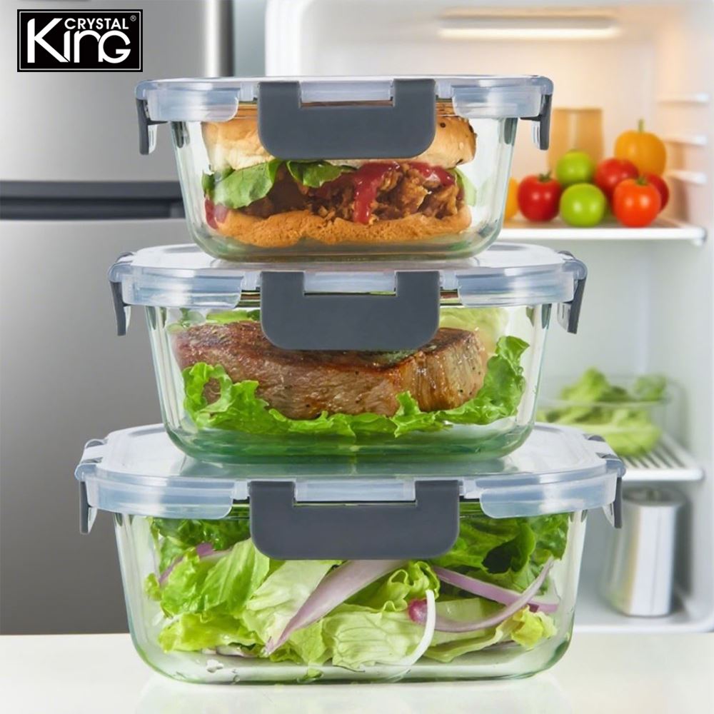 King Crystal【耐熱玻璃保鮮盒】正方形保鮮盒〈S175+S150+S130〉