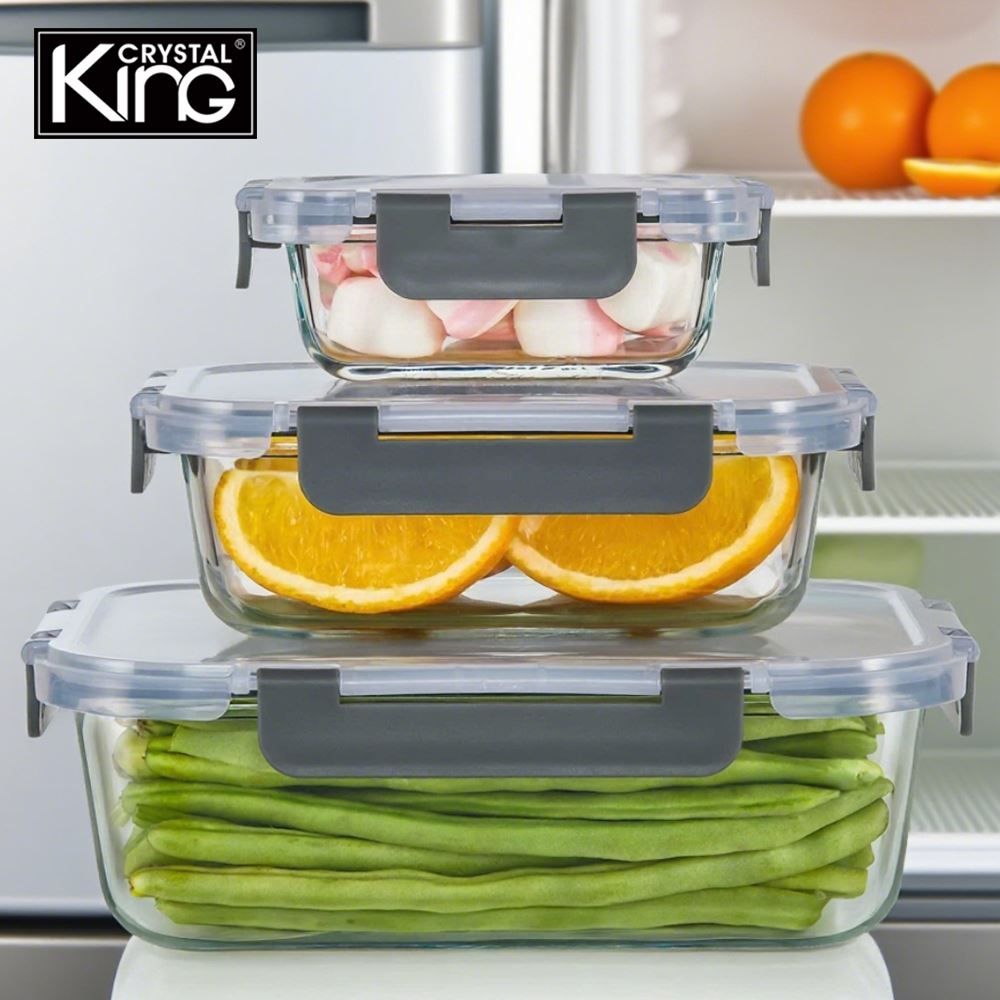 King Crystal【耐熱玻璃保鮮盒】長方形保鮮盒〈R220+R170+R121〉