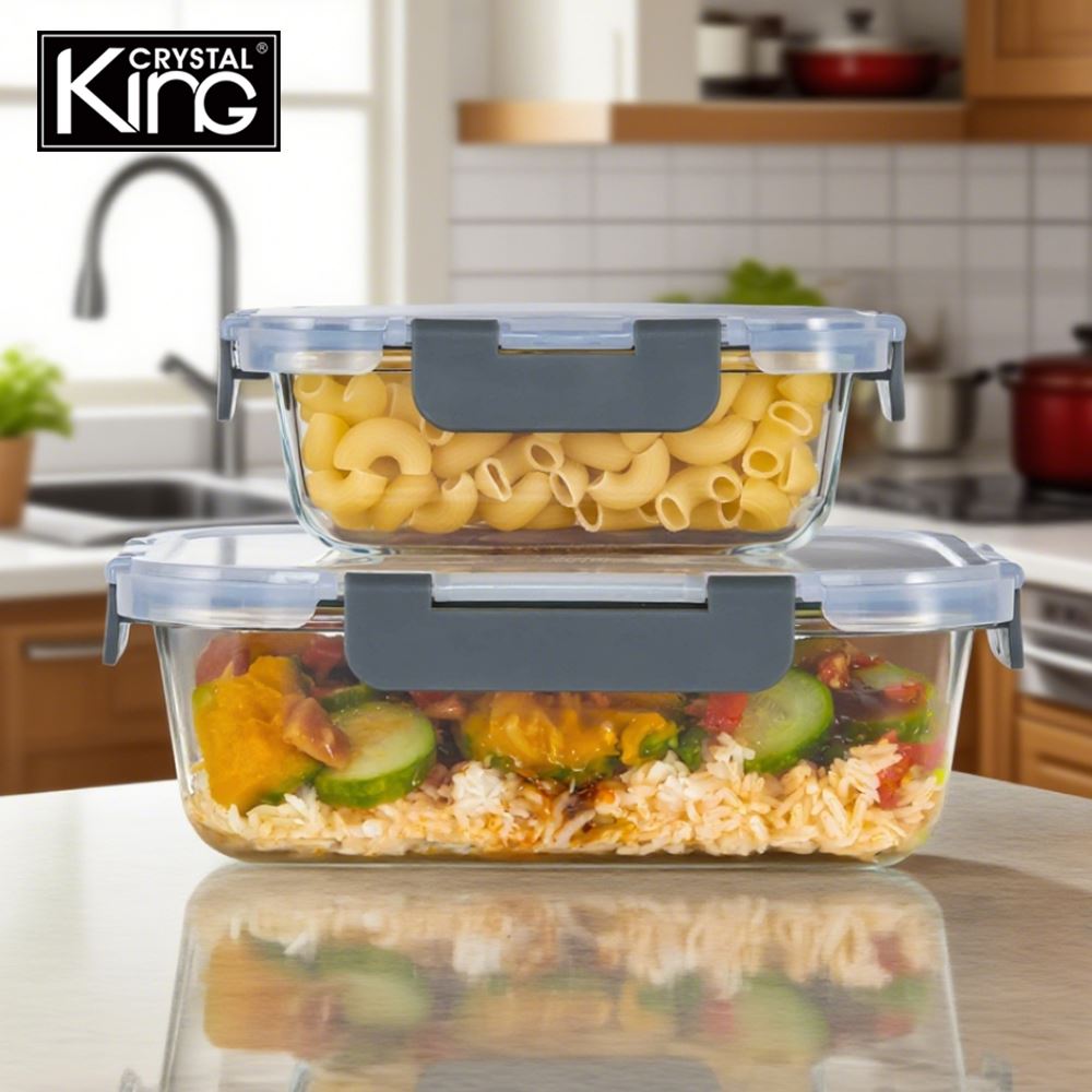 King Crystal【耐熱玻璃保鮮盒】長方形保鮮盒〈R220+R170〉