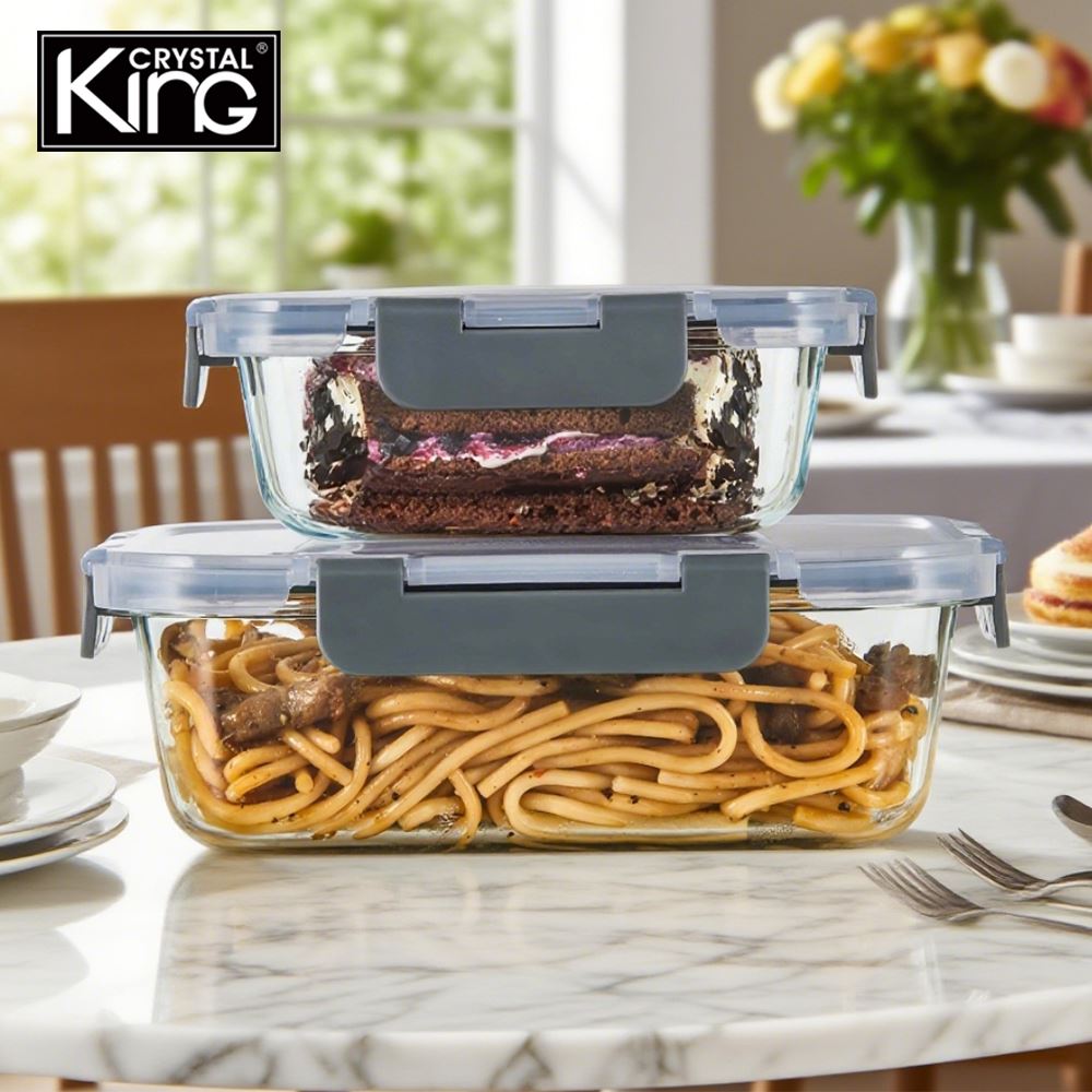 King Crystal【耐熱玻璃保鮮盒】長方形保鮮盒〈R195+R145〉