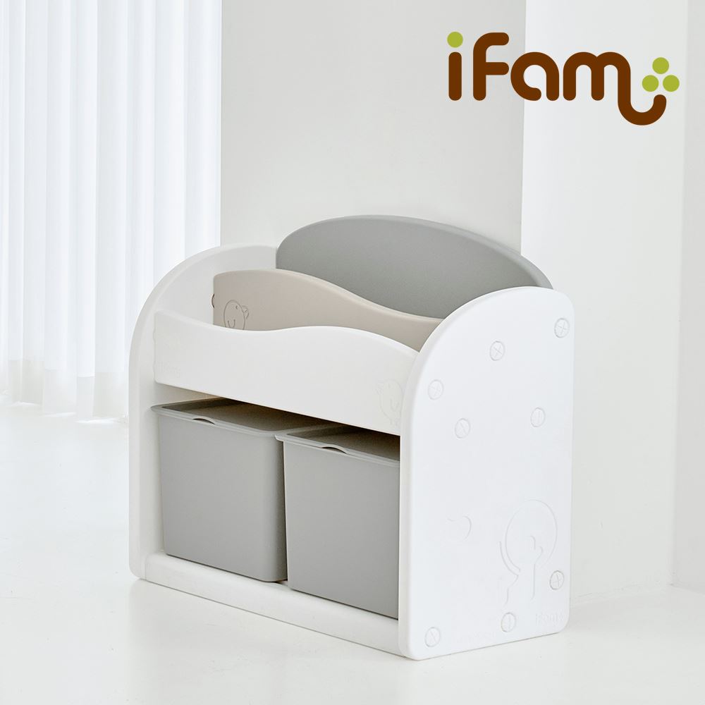 《育好兒,好過年!》波浪書架收納組-灰白色〈大收納盒-灰色x2〉